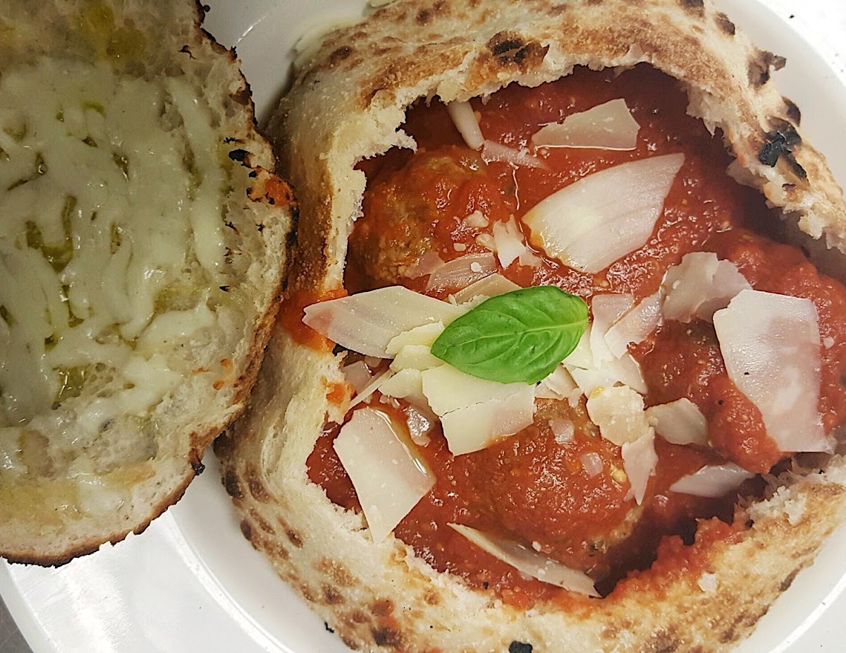 This place was an accidental find but a delicious one. No wait for seating, very busy but organized. Beautiful interior, polite staff. Our server introduced herself and she got our orders for drinks and gave us the information on the restaurant and menu. We had the meatballs as a starter with a Caesar salad, I had the Classico calzone and my wife had the pizza with arugula on it. Food was amazing this is a definite amazing date night place or bring the family for good large sized portions!!! I will tell everyone about this place.